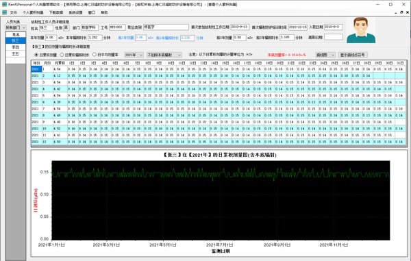 11、管理軟件:可選配強(qiáng)大的RenRiPersonal個(gè)人劑量管理軟件,軟件可計(jì)算日累積、月累積、年累積、輻照時(shí)長(zhǎng)、日平均劑量率、扣除或不扣除本底輻射,瞬間顯示86400條/天的劑量率,以圖譜或文字的方式展現(xiàn)數(shù)據(jù);可為特定用戶提供定制開發(fā)或二次開發(fā)。